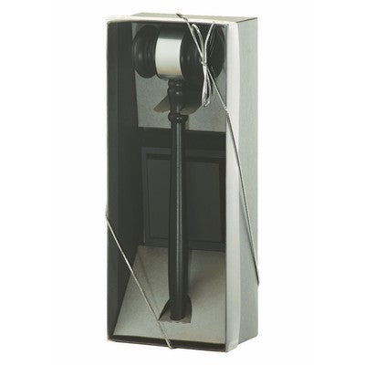 Command authority with timeless elegance. The Director's Set features a commanding 10½" ebony gavel, accented with a polished silver flexibrass band, and is paired with a matching 4" square sounding block. This prestigious award makes a powerful statement in any boardroom, courtroom, or executive office. Presented in a sophisticated charcoal and silver pinstriped acetate box, it's ready to impress from the moment of presentation. A distinguished choice for recognizing leadership and achievement.